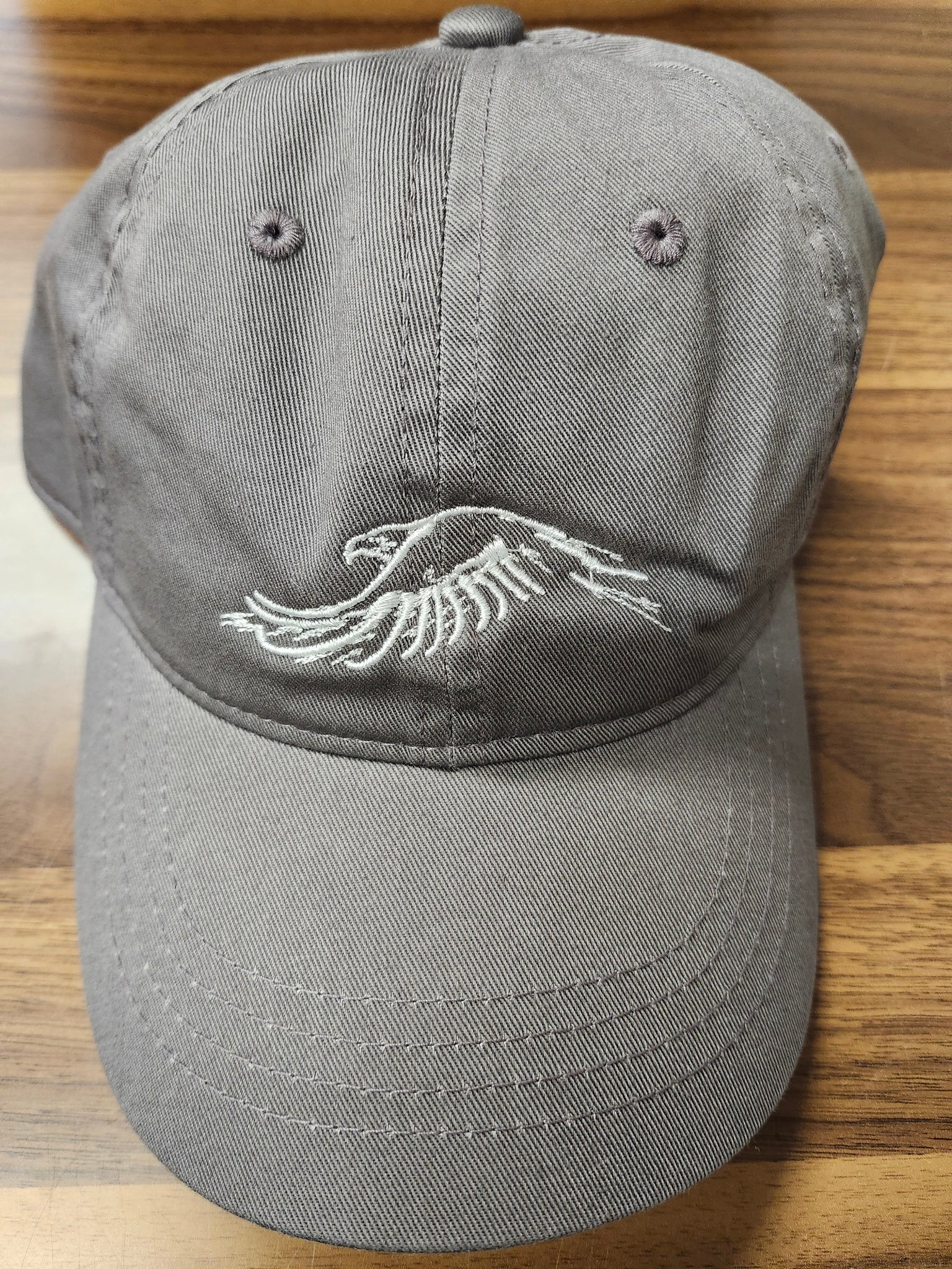 This comfortable traditional ball cap has the Center's beautiful and unique eagle in flight logo embroidered on the front with the words "The Center for Birds of Prey". Embroidery is done with a variety of options!